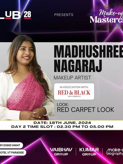 Hey, I’m Madhushree. I’m all about celebrating who you are – ‘Dusky me’ is my vibe, not just a tagline. My academy in Bengaluru is like my second home. We hustle through portfolio days, exams, then party hard at graduation – those moments, my heart’s full. I love mixing our local culture into my work, especially during Varamahalakshmi habba. Makeup’s not a mask, it’s just a bit of extra joy. Nimma jeevana sampattu, aarogya mattu santoshadinda koodirali!
