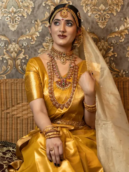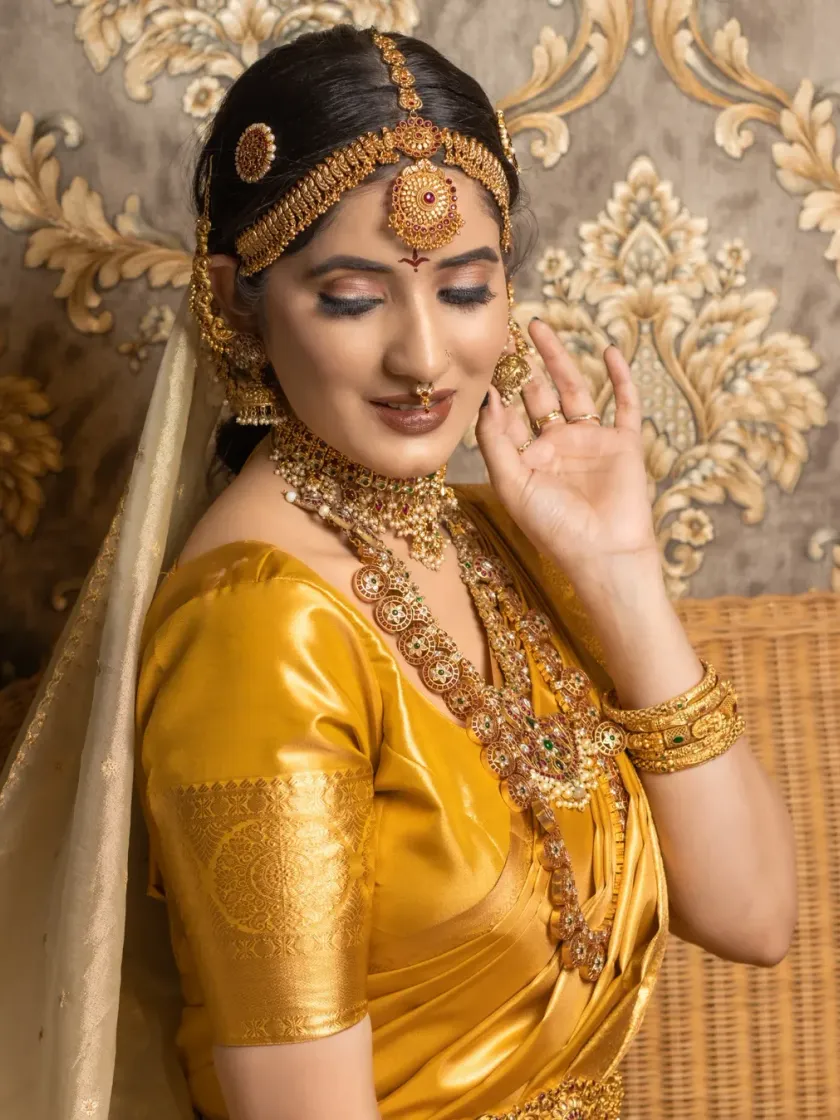My students learn to create stunning South Indian bridal looks, from traditional temple jewellery styles to modern interpretations. This is a core part of my Probatch, where they build a professional portfolio with real models, covering everything from flawless base makeup to intricate hairstyling.