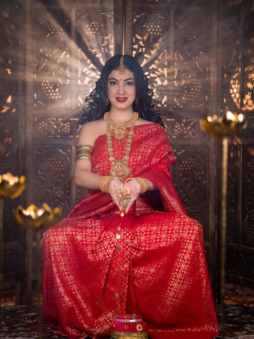 I encourage my students to explore their creativity beyond traditional makeup. We work on thematic and high-fashion concepts, like our Varamahalakshmi and Diwali shoots, which are perfect for building a unique and artistic portfolio that stands out.