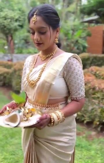 - Outfit: Standard saree draping (pleated pallu) or dupatta setting.
