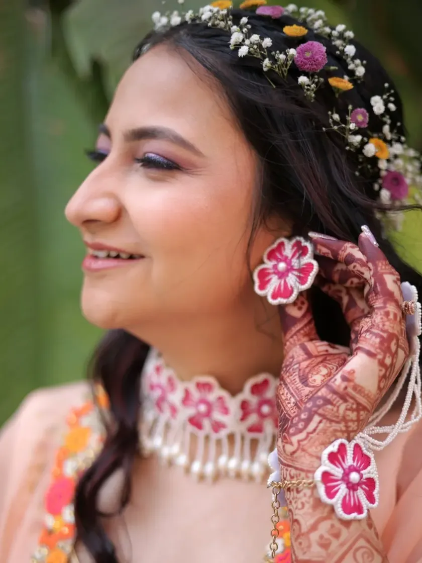 The celebrations start here. For daytime events like Haldi, Mehendi, and Mayera, I love creating fresh, vibrant, and fun looks. This collection features bright colors, floral accessories, and makeup that is light, dewy, and perfect for celebrating in the sun.