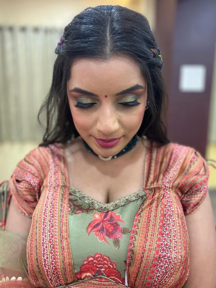 Hey, I'm Dharma Vaid from Mumbai! I’m a makeup and hair artist, but honestly, I’ll go wherever my brides need me. For me, makeup is more than just products – it’s about that moment when you see a bride light up, feeling confident and beautiful. That 'wow' reaction? Best part of my work. I love helping brides feel like the best version of themselves, especially on their big day.