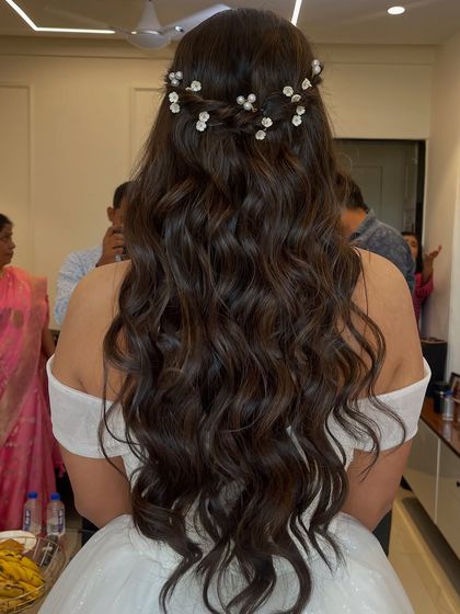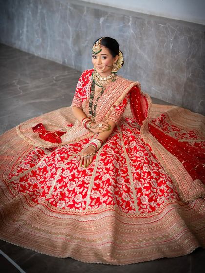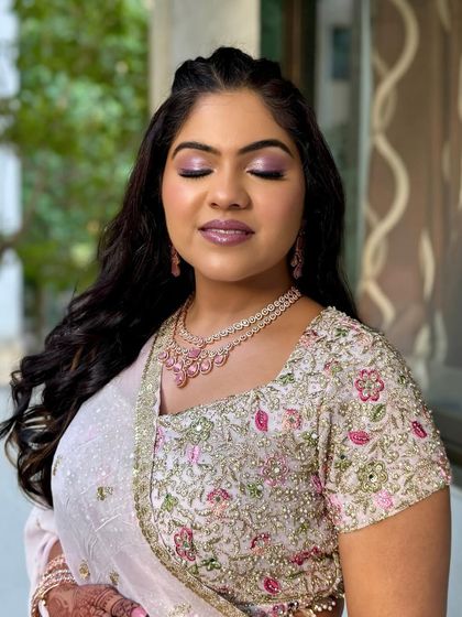 Hi, I’m Karishma. Been in the makeup game for 7 years, trained with legends like Shradha Luthra and Aarushi. For me, makeup is about celebrating you, not hiding you. There’s nothing like seeing a bride’s real smile in the mirror—that’s why I do this. Festivals at home, like Ganpati, keep me grounded. Family, tradition, and those little joys inspire how I work and connect with my clients.