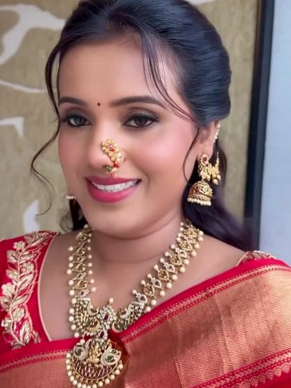 I have a special place in my heart for creating authentic Maharashtrian bridal looks. From the traditional Paithani saree to the iconic nath and mundavalya, I design makeup that honours these cultural details. I focus on creating a fresh, glowing base and defining the eyes to complement the vibrant colours and rich heritage of a Marathi wedding.