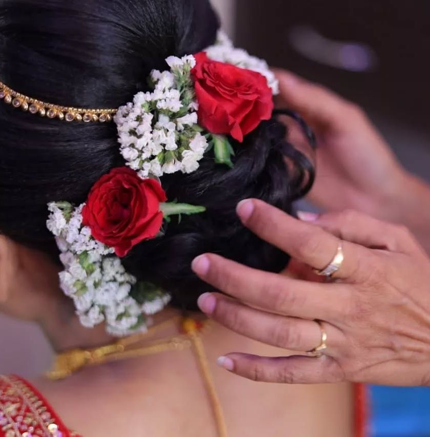 I believe a bride's hair is her crowning glory. I design a wide range of hairstyles, from classic updos and intricate 'khopa' buns for traditional ceremonies to soft, romantic curls and modern braids, often incorporating fresh flowers or elegant accessories.