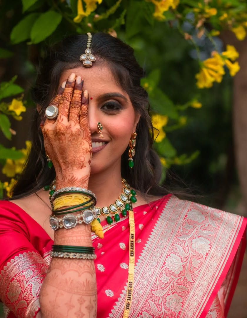 I specialize in creating authentic and stunning Maharashtrian bridal looks, from the vibrant Paithani and Nauvari sarees to the traditional jewelry. I have extensive experience with details like crafting the perfect 'khopa' bun, applying the crescent 'chandrakor' bindi, and ensuring the 'mundavalya' is perfectly placed.
