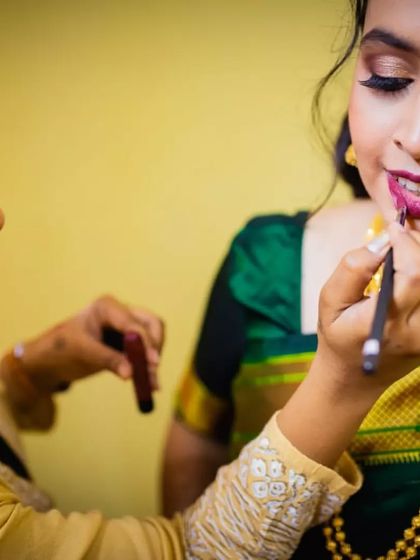 I have a special love for creating traditional Maharashtrian bridal and festive looks. From the classic 'nauvari' saree draping for a Punyavachan ceremony to a modern Paithani look for a Manglagauri event, I focus on authentic details like the crescent bindi, traditional nath, and fresh flower hairstyles.