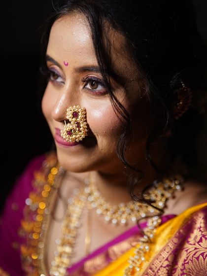 Hi, I’m Shraddha. Makeup for me isn’t about hiding you, it’s about bringing out your happiest glow. I’m all about that ‘less is more’ vibe. Watching clients go from bridal glow to motherhood glow - being there for those milestones, it’s something I cherish. Maharashtrian looks? My jam. Nauvari, nath, chandrakor - I love mixing tradition with now, making it real for every bride.