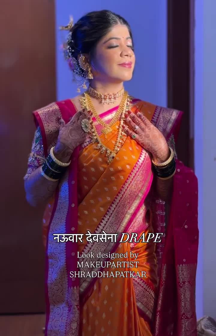 I specialize in authentic Maharashtrian Nauvari draping, including the royal Peshwai and classic Brahmani styles. Each drape is perfected for comfort and elegance, complete with traditional details like the khopa hairstyle and nath.