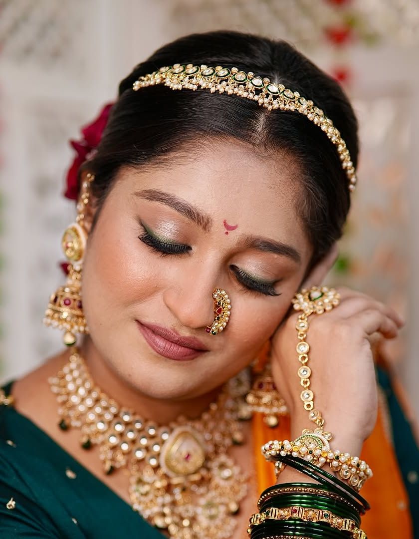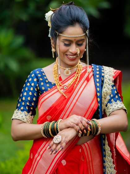 This is my specialty and my passion. I create authentic Maharashtrian bridal looks, from the classic Peshwai nauvari to the elegant Paithani, focusing on details like the khopa hairstyle, chandrakor bindi, and nath to honor our beautiful traditions. My goal is always a flawless, minimal HD makeup look that feels luxurious and lets your natural beauty shine.