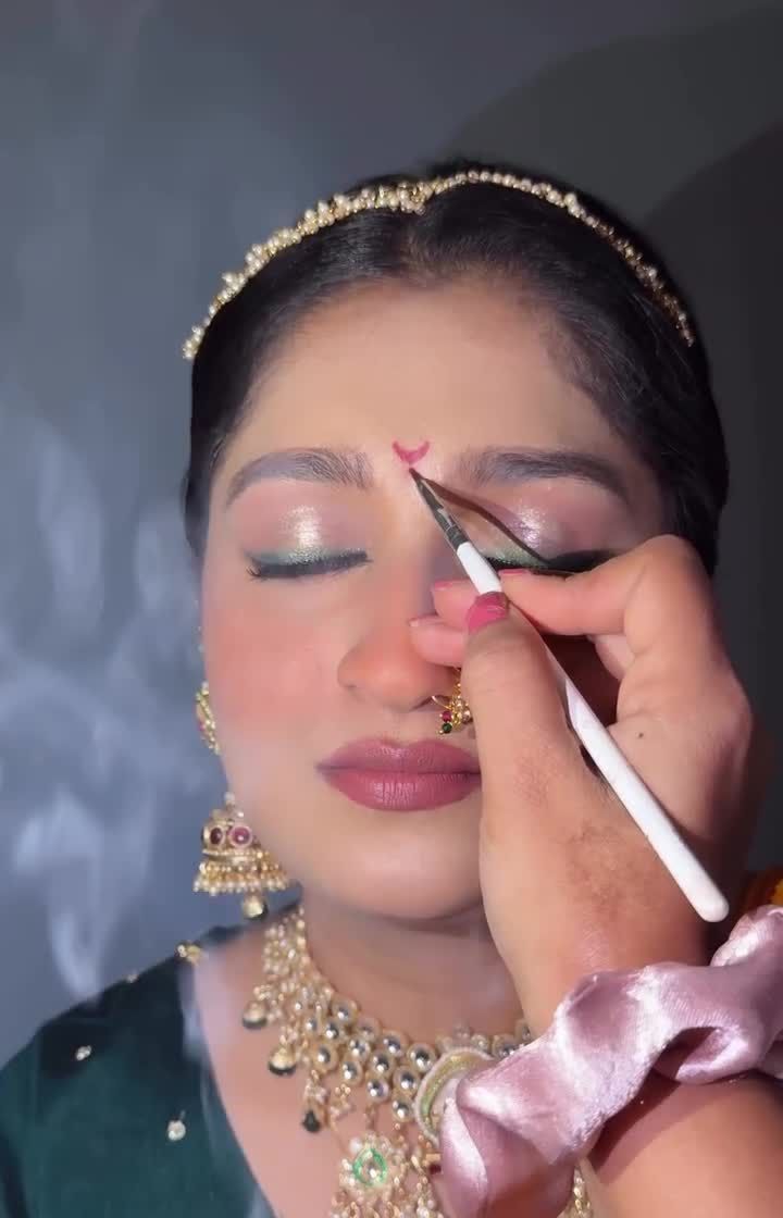 I love the regal elegance of South Indian bridal traditions. I specialize in creating looks that complement the rich Kanjivaram sarees and intricate temple jewellery, using a soft matte or dewy base and defined eyes to create a look that is both classic and divine.