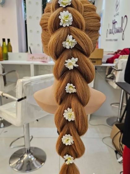 A perfect bridal look includes the perfect hairstyle. I create a wide range of hairstyles, from intricate traditional braids and buns to modern, romantic curls. I also specialize in floral art, creating custom fresh flower arrangements and garlands to complete your look.
