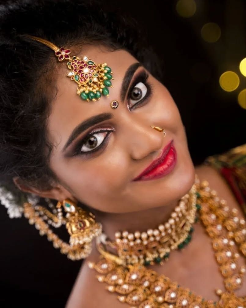 My specialty is creating flawless HD makeup for traditional South Indian weddings. I focus on creating a look that respects tradition, from the classic saree drape to jasmine flowers (mallige hoovu), while ensuring the makeup is waterproof, long-lasting, and feels personal to you.