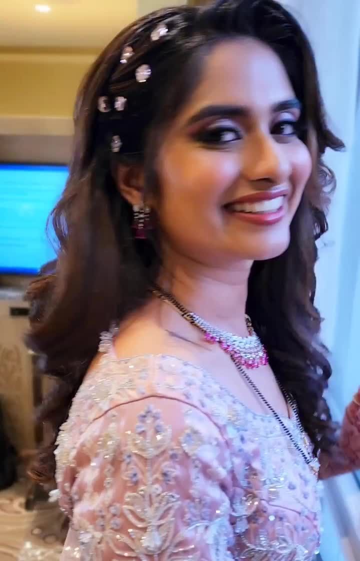 Here’s a little peek into the process of creating a complete look. This shows the detailed makeup application and how it pairs with the final hair color and styling to achieve a cohesive and stunning result for a special occasion.
