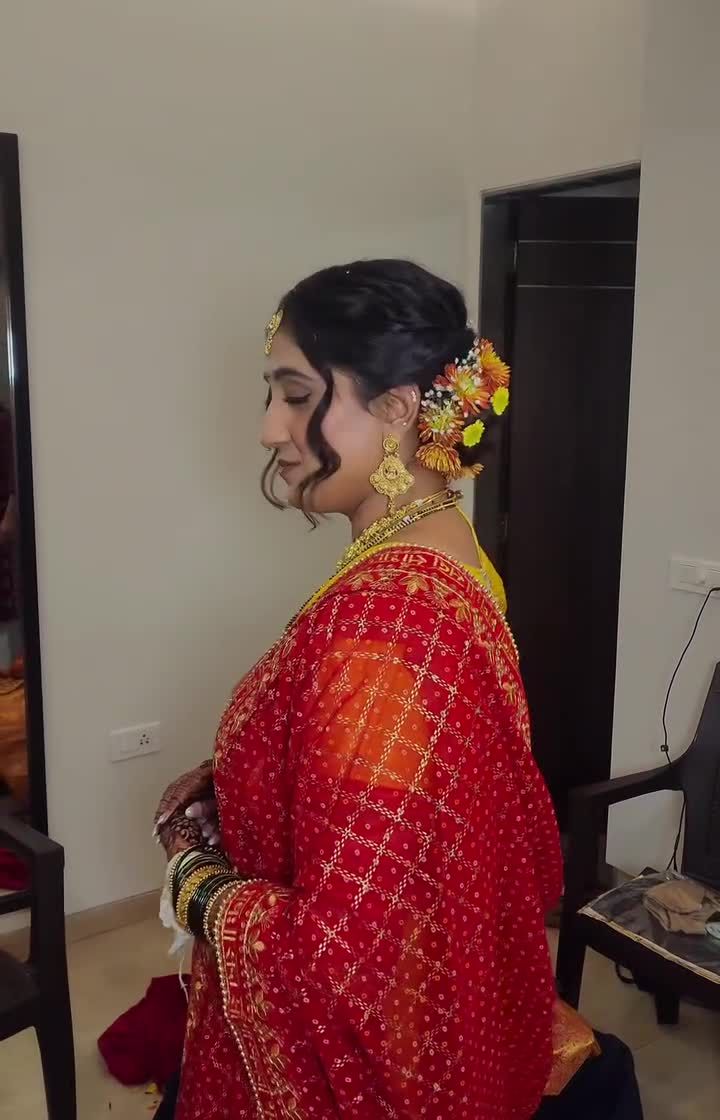 I have a special place in my heart for dressing up Marathi brides. I specialize in creating both traditional and contemporary looks, from the classic Nauvari saree styling to modern interpretations of the Peshwai bride. My focus is on achieving that signature "second skin" glow that complements the rich textiles and heritage jewelry, like the nath and mundavalya.
