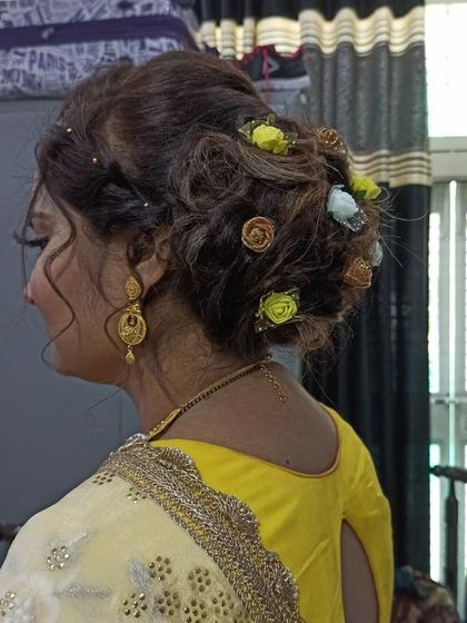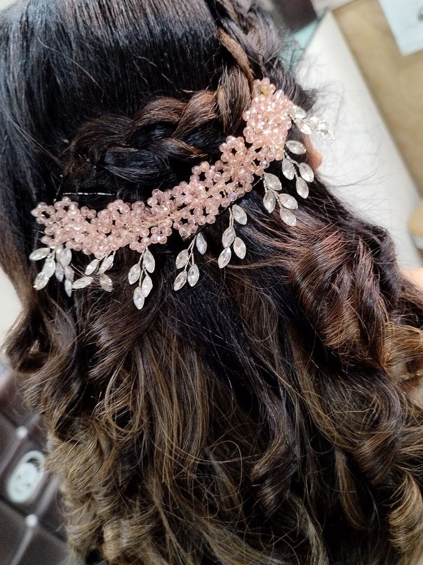 My bridal packages always include hairstyling by my trusted professional hairstylist. We can create anything from soft curls and intricate braids to elegant buns, perfectly finished with flowers or accessories to match your look.