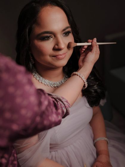 Hey, I’m Sameeha. I believe makeup should feel like you, not a mask. Did my own engagement look - simple, glowy, no fuss, just me. Also got my Aai (mom) ready - she’s my inspiration, her beauty is something else. Those moments, pure magic. When I’m not with brides, I’m at the pottery wheel, making things with my hands. That love for creating? I bring it to every face I work on.