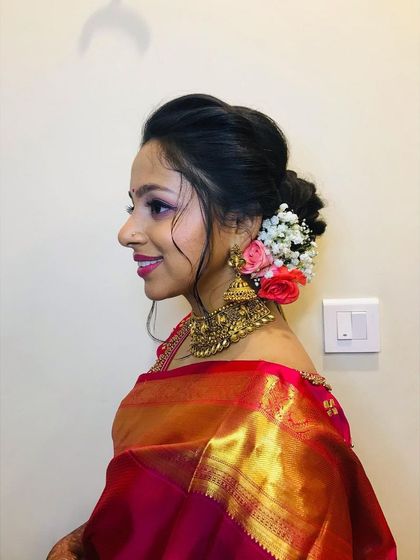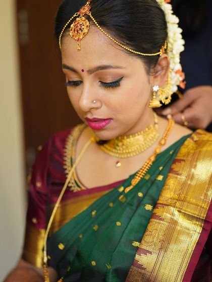 I'm a certified makeup artist specializing in subtle, natural looks that make you shine on your big day. My passion is creating stunning South Indian bridal makeup for functions like the Muhurtham or reception.