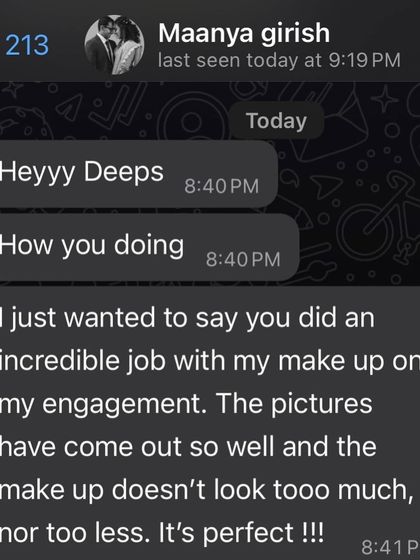 I’m Deepti. You know that moment when a bride first sees herself all dressed up? That smile, that little nervous giggle - I live for it. Makeup’s not just lipstick and blush for me, it’s making you feel like the best version of yourself. Sure, I’ve had a few celebrity moments - Yash, Anupama Chopra, Kenny Sebastian, Uorfi Javed - fun times! But honestly, whether it’s a big shoot or your Muhurtham, I just want you to feel happy and confident.