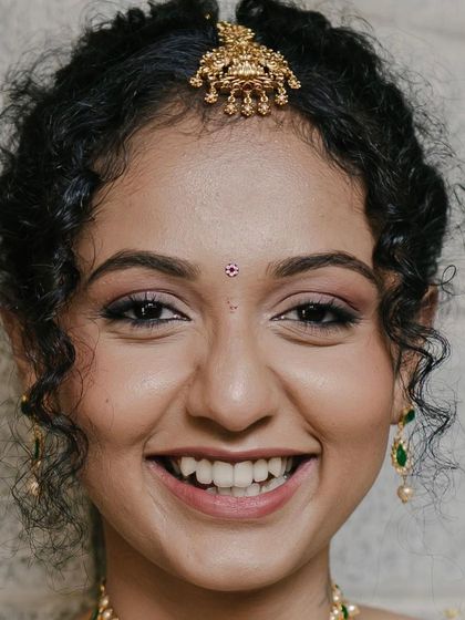 Brides seeking long-lasting, photograph-ready makeup who value attention to detail and personalized service. Particularly suited for those wanting traditional South Indian bridal looks or planning outdoor ceremonies.