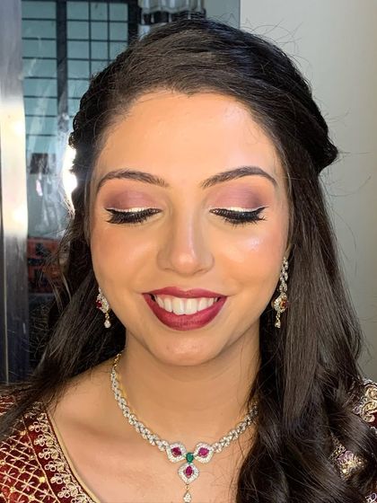 I do sweat-proof bridal and occasion makeup with real-skin finish, covering South Indian wedding styles and quick looks for bridesmaids and family.