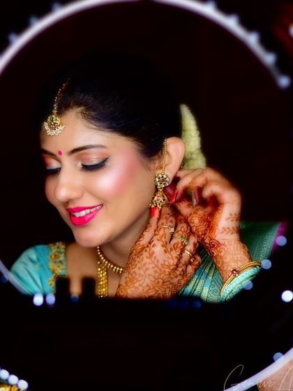 Hey, I’m Ganavi. Makeup’s been my playground since I was a kid - not to cover up, but to create magic. Got my international pro artist badge, that was wild! But honestly, nothing beats the buzz of seeing my brides light up on their big day. For me, it’s more than makeup – it’s about making you feel like you, but glowing, ready for your new chapter.