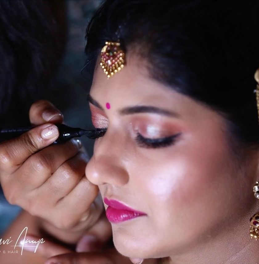 I specialize in creating timeless looks for South Indian brides, focusing on radiant skin and features that are beautifully enhanced for the camera. This includes makeup for muhurtham ceremonies and engagements, designed to harmonize with traditional Kanchivaram sarees and temple jewelry.