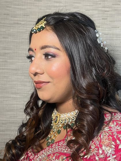I specialize in creating glamorous looks perfect for parties, sangeet ceremonies, and cocktail events. My expertise includes smokey eyes, glittery finishes, and sophisticated styles that enhance your features while ensuring they photograph beautifully.