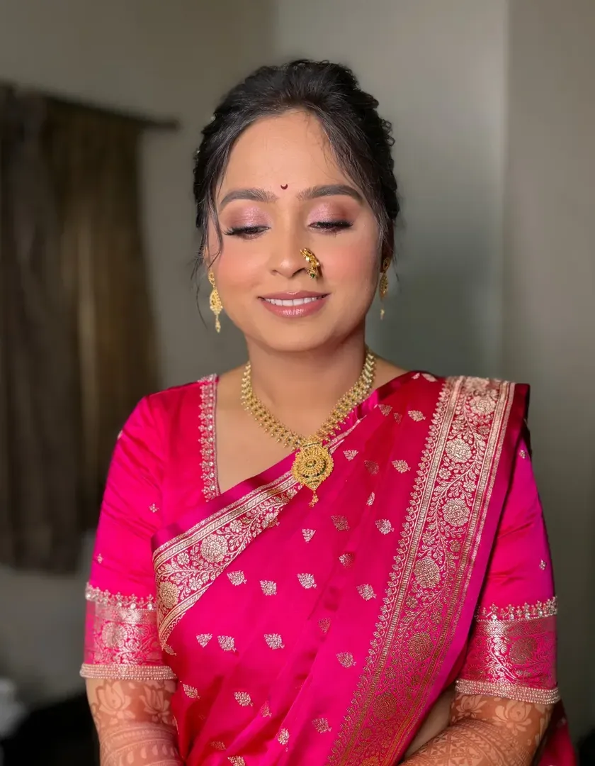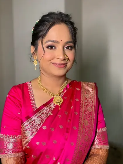 As a Marathi mulgi myself, I have a special love for creating traditional Maharashtrian bridal looks. This gallery showcases my expertise in everything from the iconic 'nathani' and 'chandrakor' bindi to creating that perfect glow that complements both vibrant Paithani and classic Nauvari sarees.