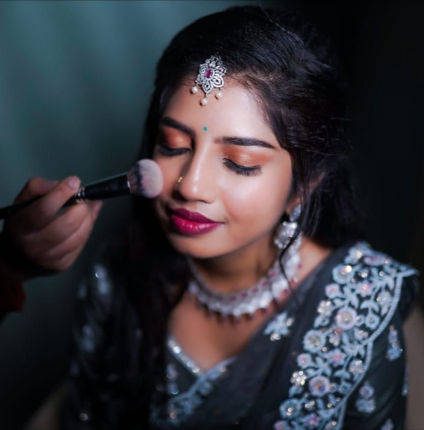 I specialize in creating timeless looks for festivals, pre-wedding events, and traditional photoshoots. From classic South Indian makeup with bold eyes and lips to elegant, soft-glam styles, I ensure the makeup complements your attire and lasts perfectly for the camera.
