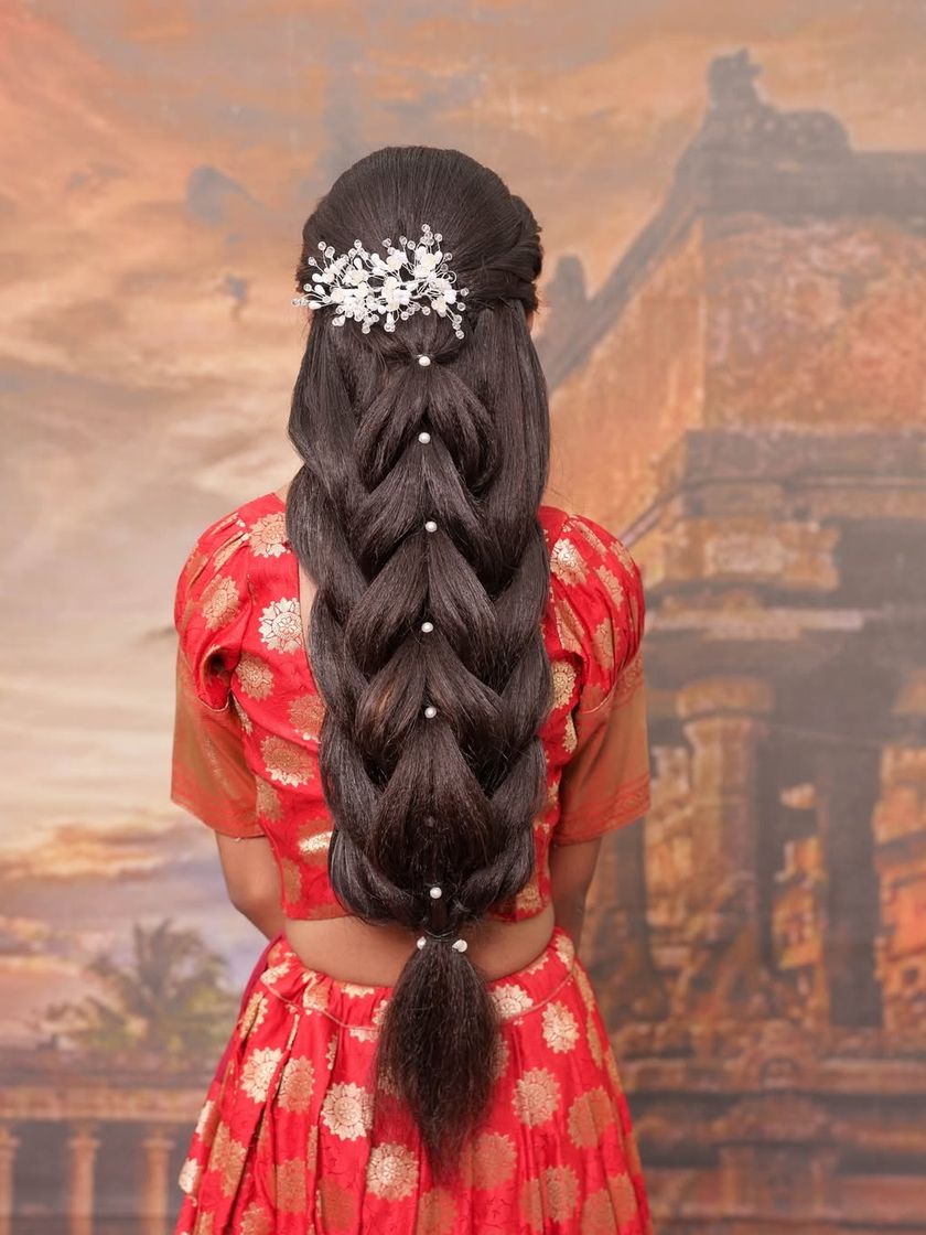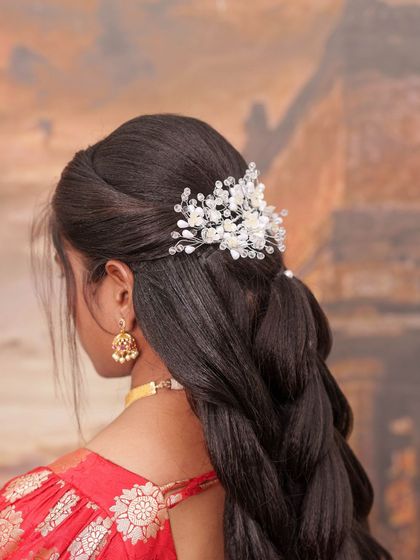 As a makeup artist and hairstylist, I offer the complete package. I create hairstyles that perfectly match your makeup and outfit, from intricate traditional South Indian braids with flowers to soft, romantic curls and modern updos.