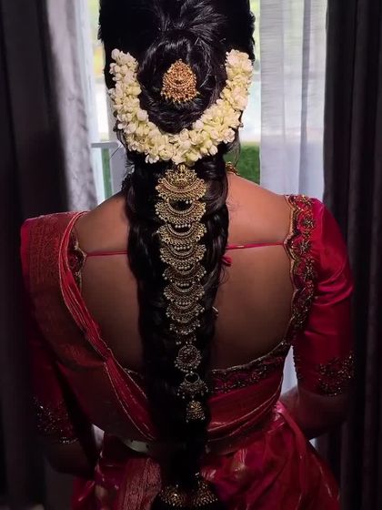 A great makeup look is only complete with the perfect hairstyle. My team and I are skilled in a wide range of hair artistry, from traditional South Indian braids and intricate floral buns to modern Hollywood waves, chic ponytails, and romantic messy updos. We love incorporating accessories like fresh flowers, pearls, and crystals to make your hairstyle a true statement piece.