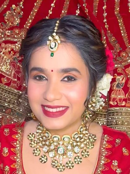 Hey, I’m Deepika. When a bride sits in my chair, I’m all about making her feel like royalty. It’s not just makeup, it’s a whole vibe - tired faces walk out glowing. I get goosebumps seeing families react, from teary moms to jaw-dropped brothers. I love every style, whether it’s a Maharashtrian navri with her nath or a glam Nikah look. My thing? That soft, glowy glass skin finish. Makeup should show off you, not hide you. I also teach, sharing all my hacks so anyone can feel fab.
