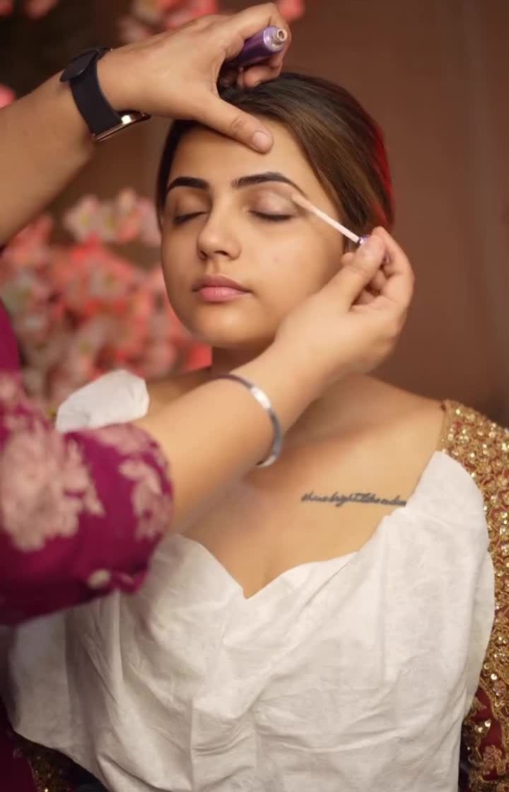 Here is a peek behind the curtain at how I bring my bridal visions to life. From the first brushstroke to the final reveal, you can see the detailed process of creating a flawless, long-lasting look, including my signature 'ankhon ka kaam' (eye makeup).