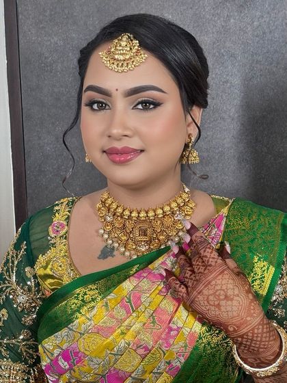 I offer comprehensive makeup services specializing in bridal, high-fashion, and natural looks with over 8 years of experience. My expertise includes HD makeup application, airbrush techniques for flawless glass skin, and traditional South Indian bridal styling.