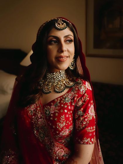 My go-to is a dewy wedding makeup look with fresh, radiant skin. If you’re into minimal wedding makeup, we can totally skip the drama and keep it soft and real. Want the classic red bridal look? I’ve got you. For Cocktail or Reception, I do a modern glam bridal style with a polished finish.