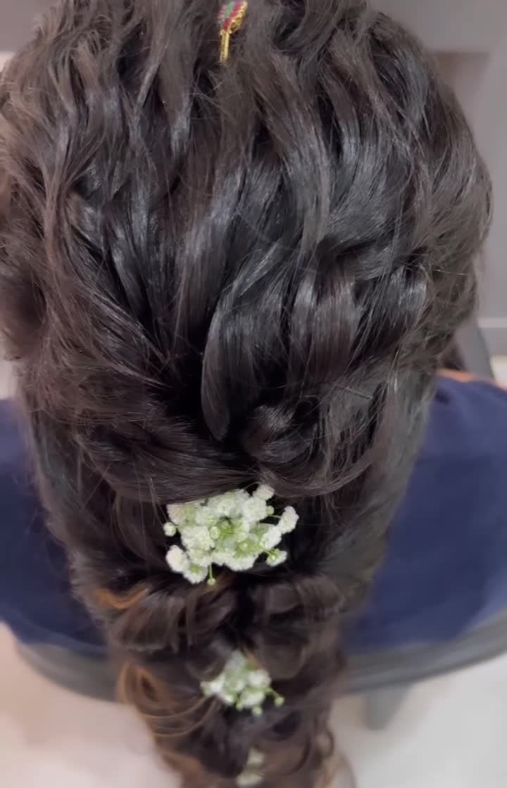 A great makeup look is perfected with the right hairstyle. I create a variety of styles, from intricate traditional braids and floral buns for sarees to soft curls and modern updos for lehengas and gowns.
