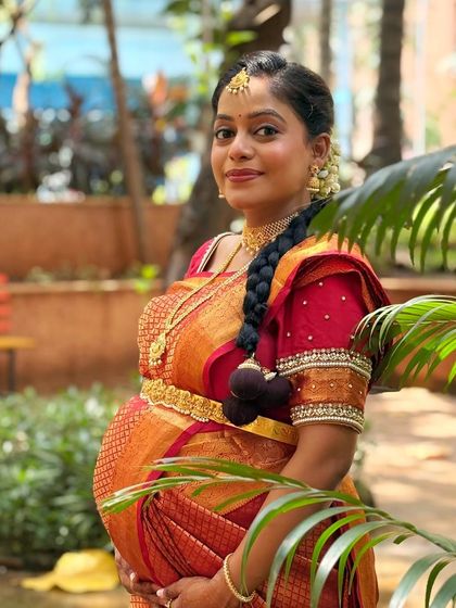 A perfectly draped saree is the foundation of a graceful look. I provide expert draping services for various styles, including the traditional Maharashtrian Nauvari and classic South Indian drapes, ensuring every pleat is immaculate and secure.