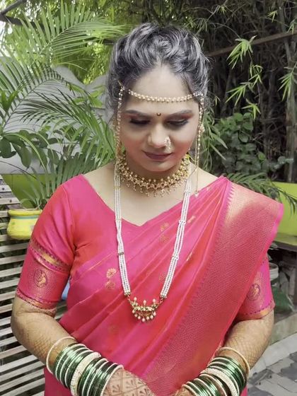 I have a special love for traditional makeup, from the classic Marathi 'Navri' to elegant South Indian styles. I focus on creating authentic looks that respect tradition, using details like the nath, mundavalya, and specific jewelry to make you feel like a true 'Sundari'.