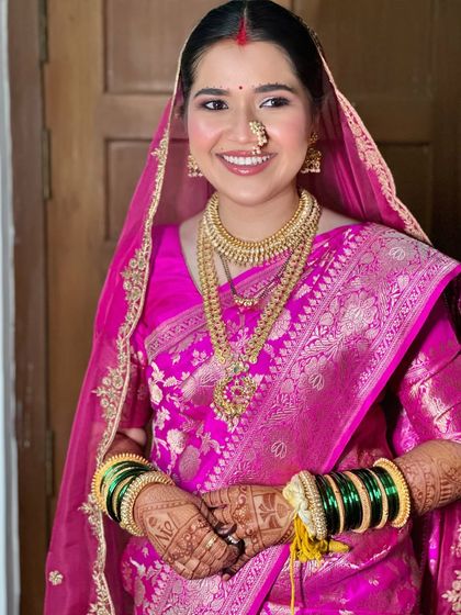 As a Mumbai-based artist, I have a special place in my heart for Maharashtrian brides. I specialize in creating authentic looks that celebrate tradition, from the classic Paithani or Nauvari saree and the iconic 'nath' to the half-moon bindi, all while ensuring the bride's skin looks luminous and her personality shines.