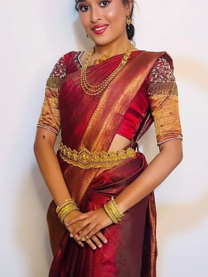 I specialize in creating timeless looks for South Indian brides and other traditional functions. My service focuses on makeup that complements silk sarees and gold jewelry, ensuring a radiant, long-lasting finish that feels comfortable. This is a complete head-to-toe package, including expert saree draping and hairstyling.