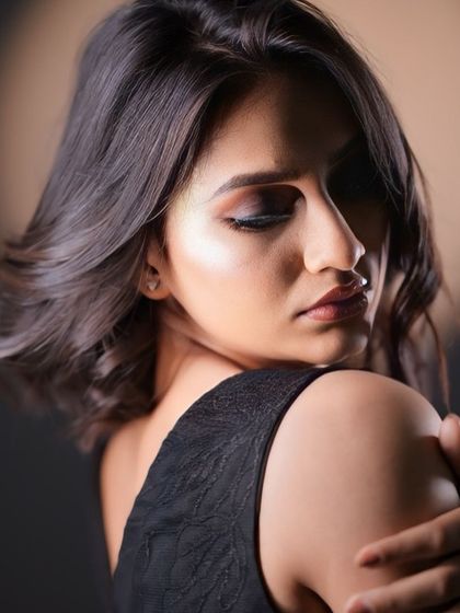 Your look isn't complete without the perfect hairstyle. I create a range of styles, from traditional South Indian braids adorned with fresh jasmine flowers (mogra) to soft, modern curls and elegant updos. I ensure your hair not only looks beautiful but also stays in place throughout your event.