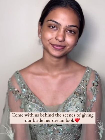 - Minimalist sangeet makeup with soft shimmer and a fresh base.