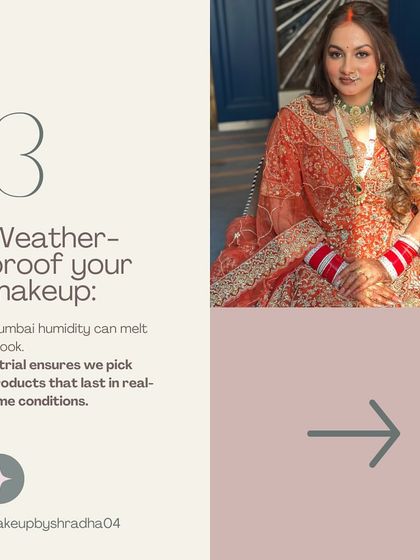 Hey, I’m Shradha. Makeup’s not about changing faces, it’s about letting your real self shine. That moment when a bride sees herself and just beams – that’s why I do what I do. I always chat with my brides, we vibe, we plan, we laugh. Trial session is a must, so we nail your look, no last-minute drama. Whether you’re from Mumbai, Pune, or somewhere far, I’m here to make you feel your best.