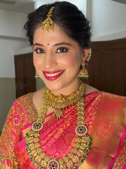 South Indian Bridal Specialist - I love creating classic South Indian Muhurtham makeup and vibrant Varapooja looks, including special hairstyles.