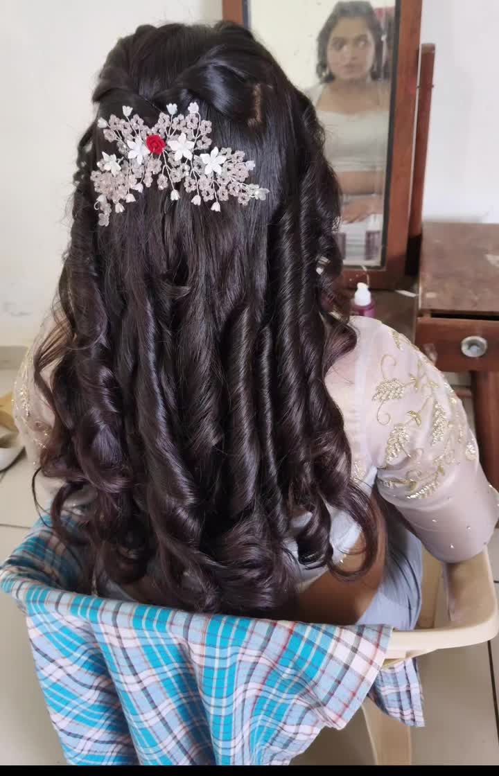 Makeup and hair go hand in hand for a complete bridal look. I create a variety of hairstyles, from traditional South Indian braids with fresh gajra and intricate accessories to modern, romantic loose curls and elegant updos.