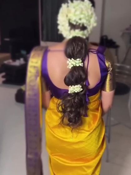 The perfect hairstyle completes your look. I offer a wide range of hairstyling services, from classic South Indian braids with fresh flowers and traditional accessories to modern updos, romantic curls, and chic waves for any occasion.