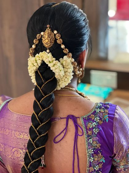 - Traditional hairstyles - jasmine-studded braids, gold pins, or rose-adorned buns