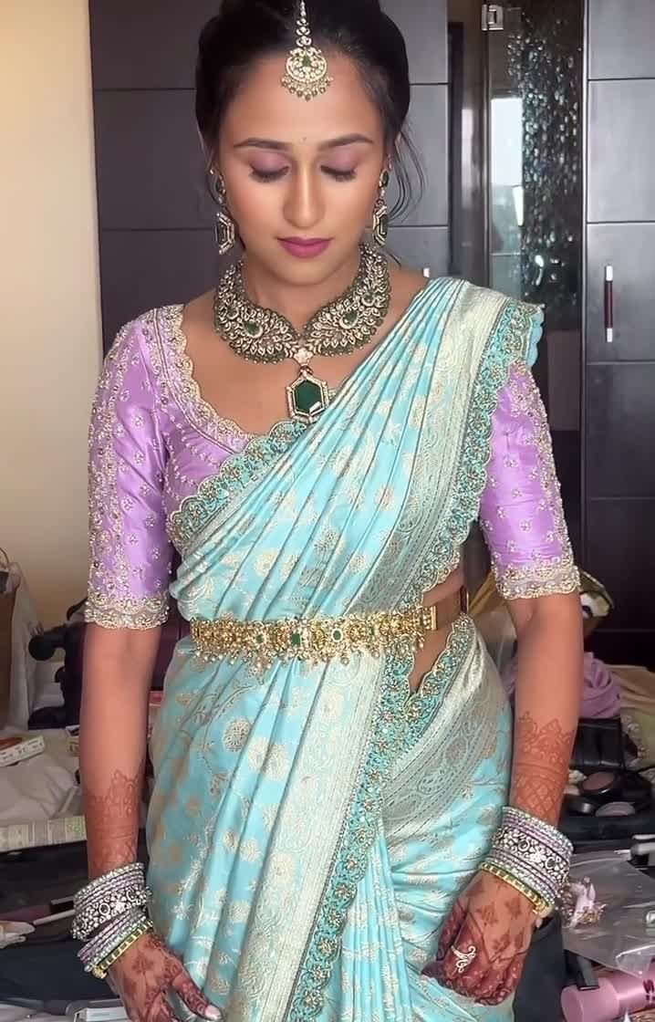 I specialize in creating authentic and regal looks for the main wedding ceremony, honouring our rich heritage. My focus is on creating a flawless, radiant complexion that complements the Kanjeevaram silk saree and intricate temple jewellery, complete with traditional hairstyles like jasmine-adorned braids.