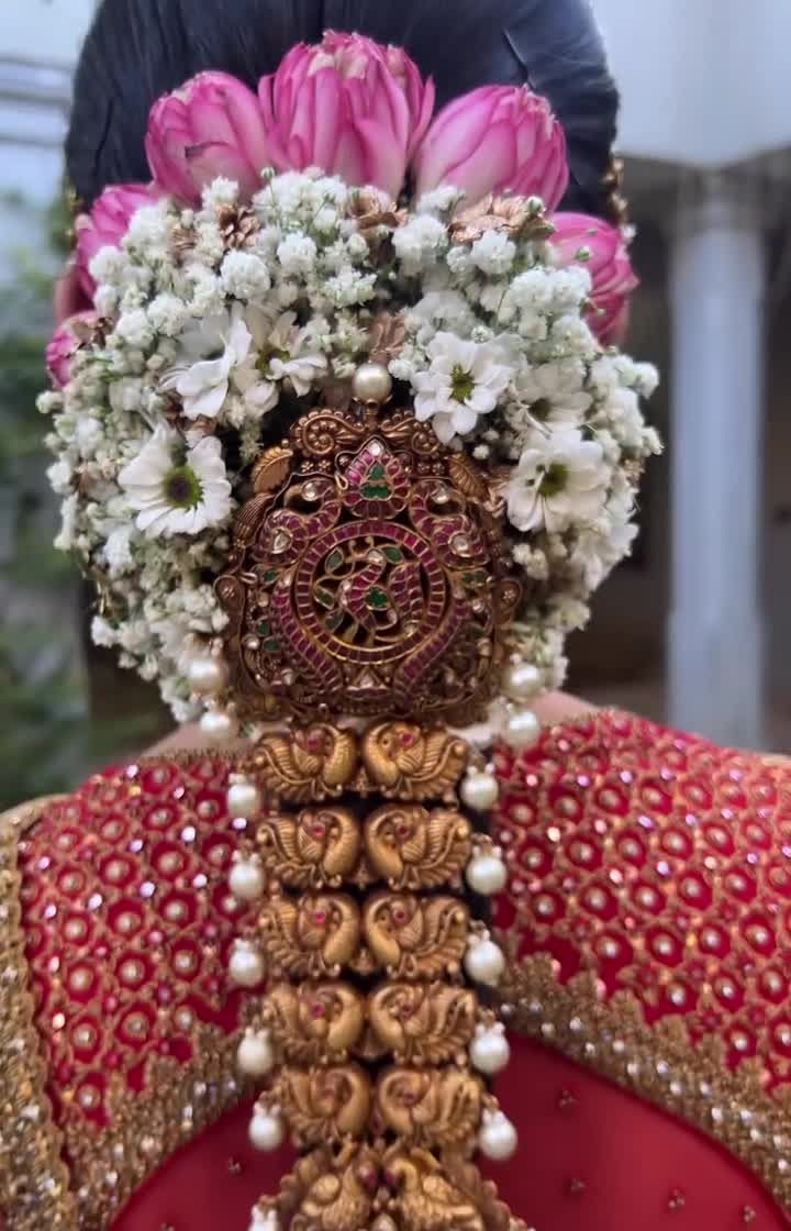 A bride's hair is her crowning glory. I design a variety of hairstyles, from intricate traditional South Indian braids adorned with fresh flowers and temple jewels, to modern and chic updos, ponytails, and soft waves for receptions and sangeets.